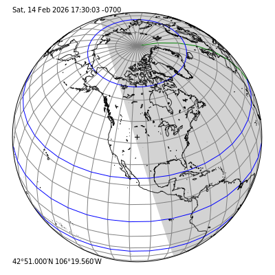 This image was painted by my incomplete tellurion. A complete tellurion is a model of the Sun/Moon/Earth system. I have not added Luna yet and the position of Sol is only implied by Earth's dark side. If you have an Ubuntu desktop, you can install and run the Scheme program. It will display this image and update it every 15 minutes so you will know when it is nighttime. Complete instructions are available in the manual. Monterey Bay
